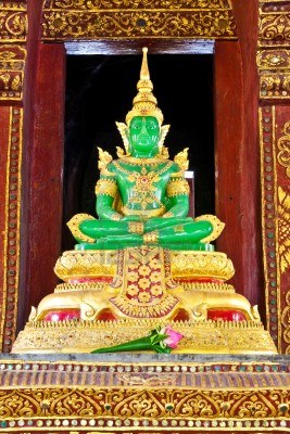 Buddha de Smarald e în realitate sculptat într-o bucată de jad verde. Statuia are 75 de centimetri și este cel mai venerat obiect de cult din Thailanda. Regele însuși îi schimbă de trei ori pe an veșmintele.