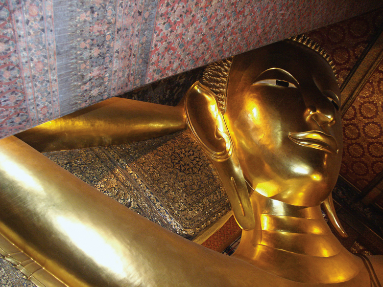 Tot în apropierea palatului regal se află și o statuie gigantică a lui Buddha, care măsoară 49 de metri. Locul gâlgâia de turiști. Ne-am călcat în picioare. Aglomerația bătea toate ratingurile. Mă simțeam ca într-un tablou de Ensor. Intrarea vomita întruna vizitatori. Primii trei metri i-am parcurs în cinci minute și m-am blocat. În spatele meu, un canadian răcit îmi strănuta pe gât. Eram ca o eczemă enormă, care desfigura mausoleul.